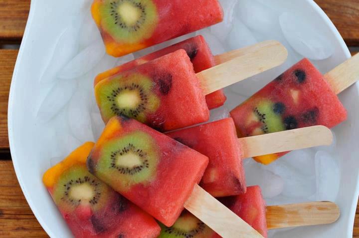 For the presentation, wrap a piece of rectangle-shaped Styrofoam (found at craft stores) with wrapping paper or wall paper. Cut slits in the paper, then insert the popsicles into the Styrofoam. Serve immediately!