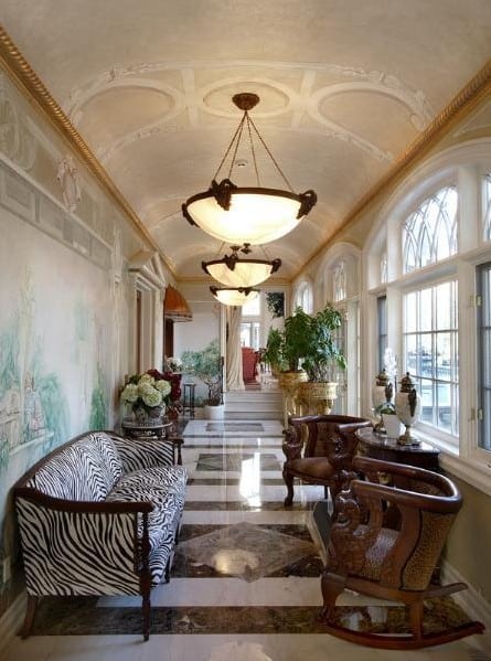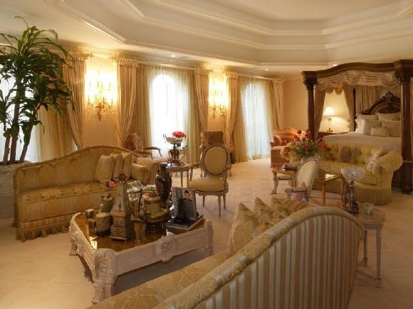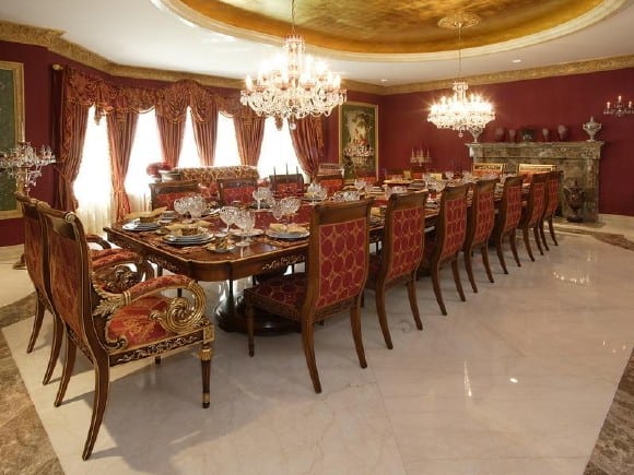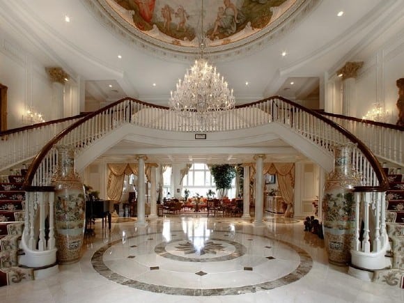 For a real look at Kimora’s style check out the Saddle River, New Jersey home that Kimora Lee and Russell have been trying to sell for a few years. We’ve been talking about this home for a few years but never given in full estate of the day treatment. It was once listed for $23.888 million dropped to $19.888 million and then pulled off the market. But as Homes of the Rich pointed out last month, the exes are giving it another trying, relisting the lavish mansion at $16.5 million. The 10-bedroom home famous for its cinema-worthy home theater, professional fitness center, wine cellar with bar seating and painted rotunda has made the rounds of various television shows and magazines. It has both indoor and outdoor pools, staff quarters, a pool house and a security system designed by the White House security company.