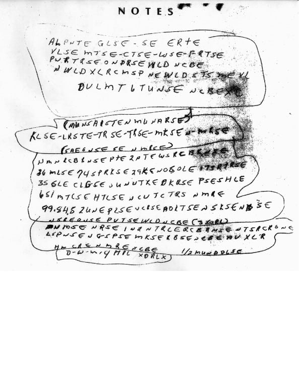 The FBI has reached out to the public with code breaking brain teasers in the past–but they were games, not actual cases. This is the chance for want-to-be FBI sleuths to break their brains on code that is part of a current investigation. The notes are after the jump.